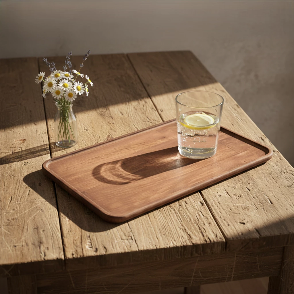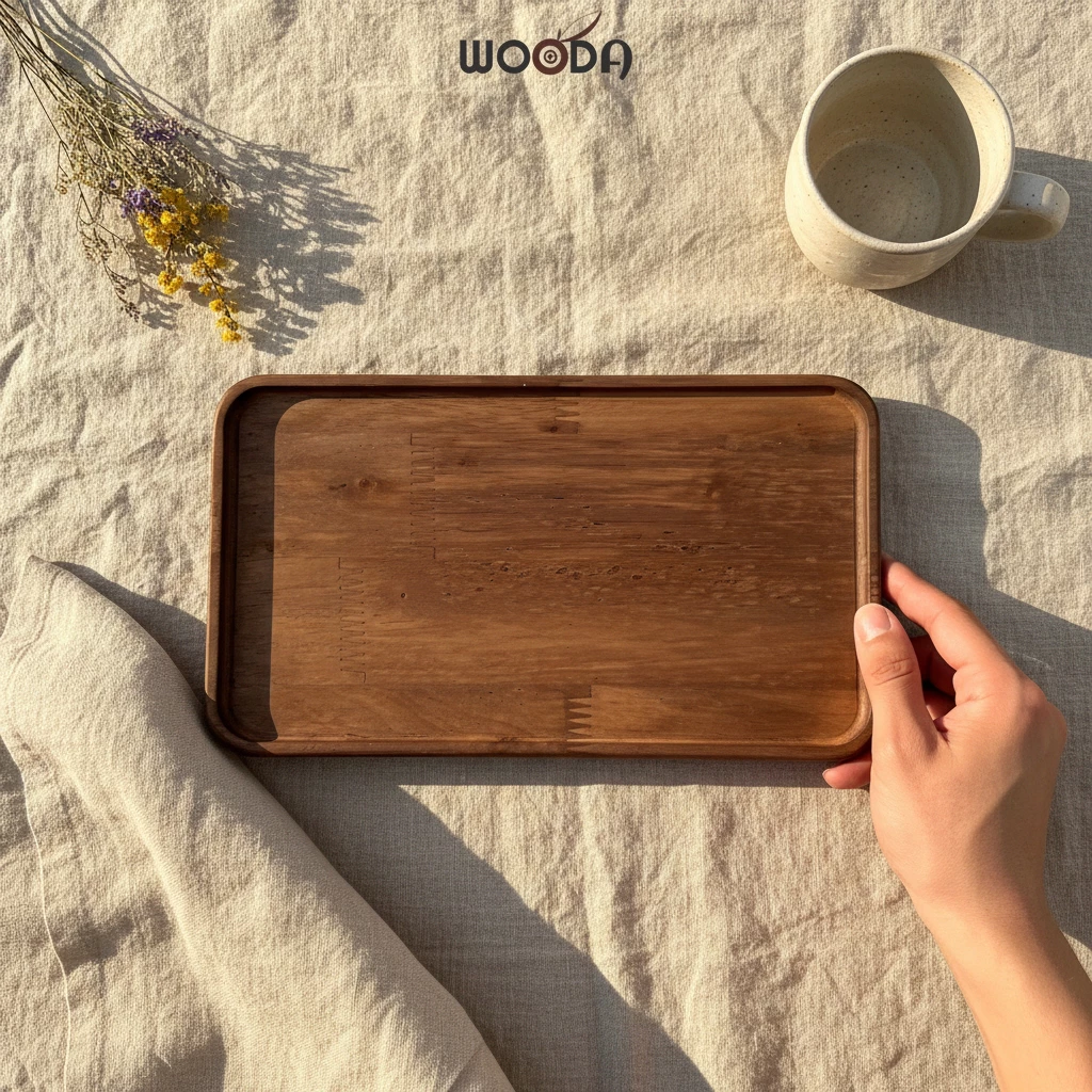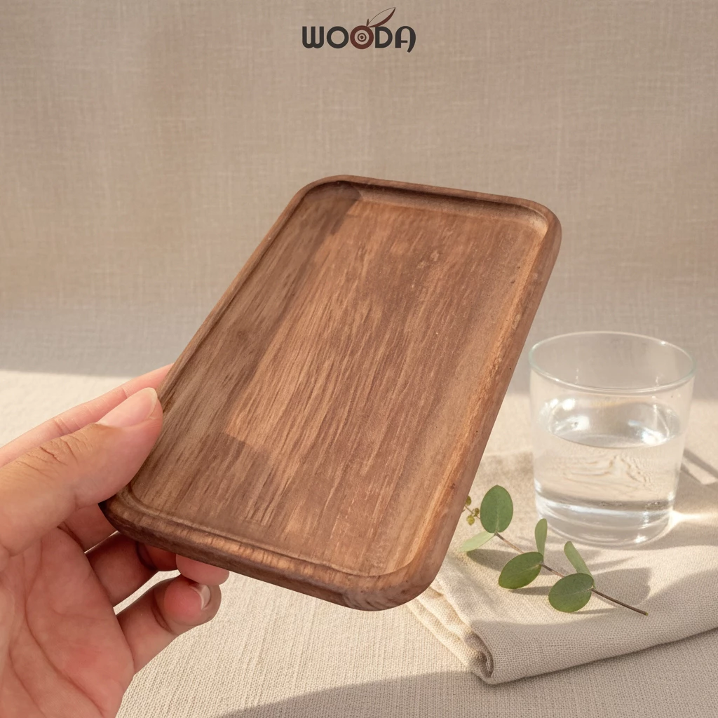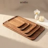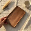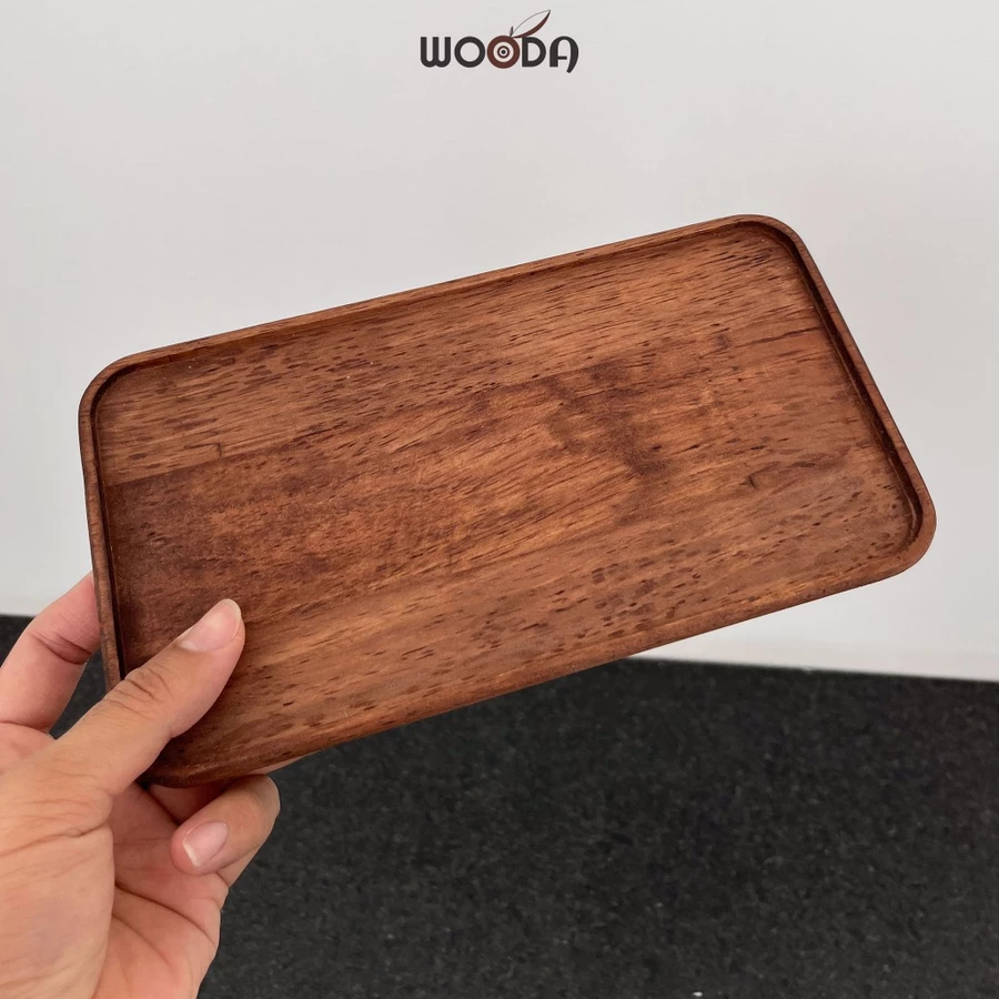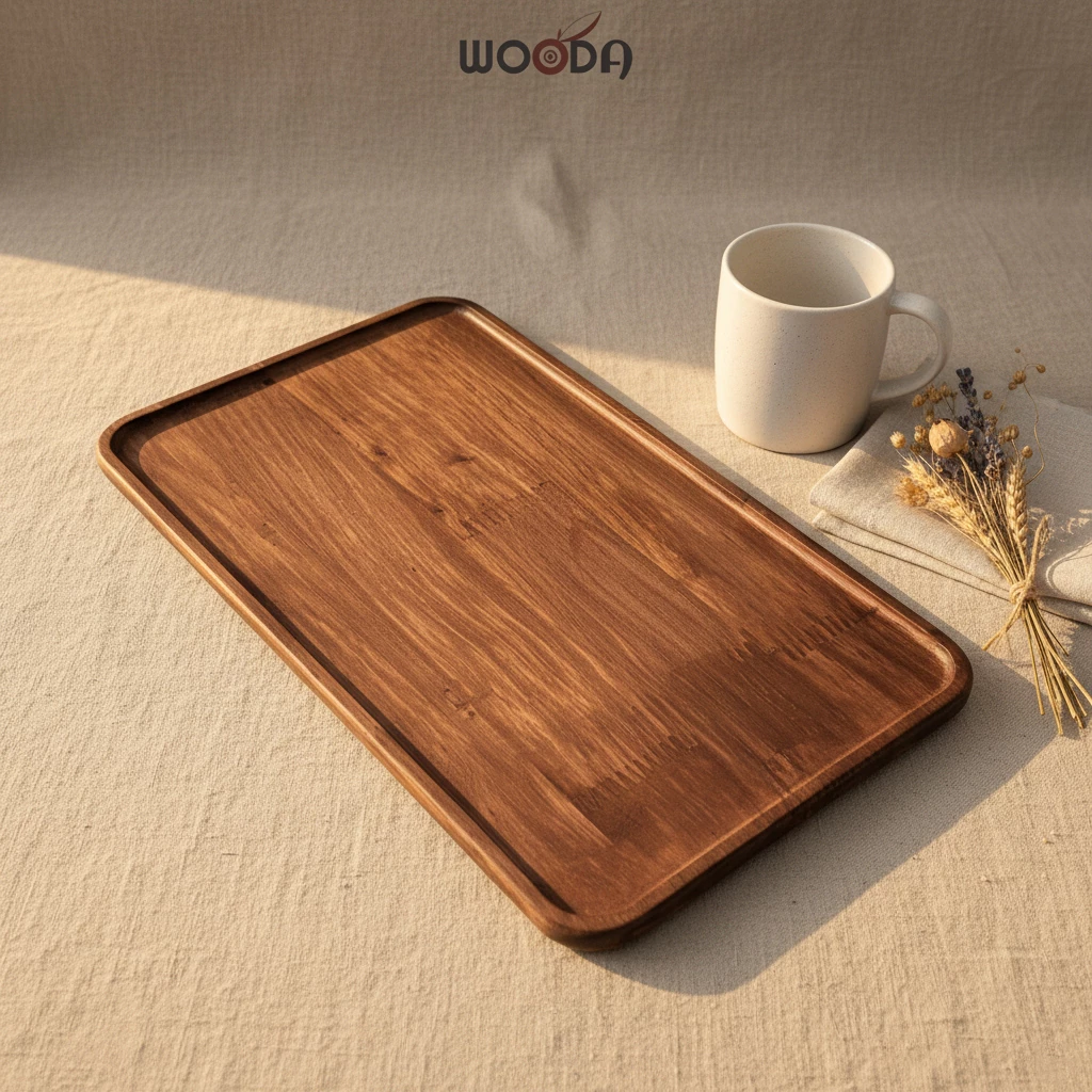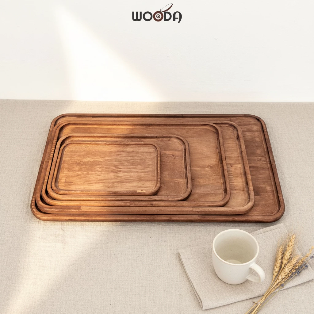Bộ khay chữ nhật gỗ cao su tự nhiên màu nâu, mỏng nhẹ