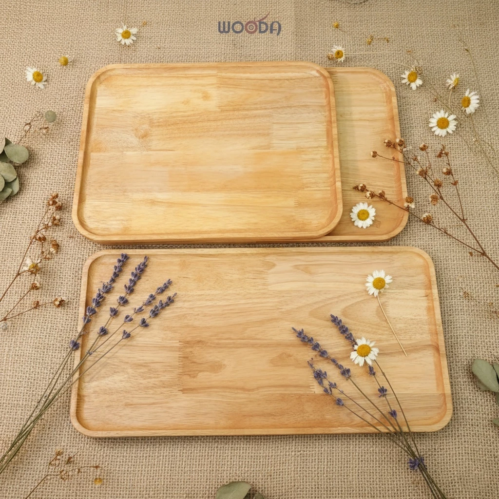 Khay gỗ to, mâm gỗ cao su hình chữ nhật nhiều kích thước
