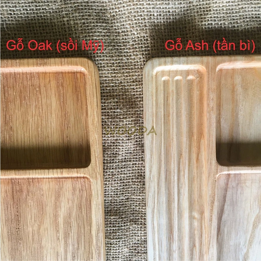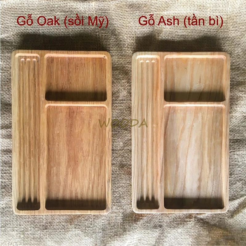 Chất liệu: có 3 loại khay được làm từ gỗ ash (tần bì), loại được làm từ oak (sồi) và được làm từ walnut (óc chó) tự nhiên nguyên khối. Bên ngoài được xử lý bằng sơn an toàn giúp bảo vệ gỗ hoàn hảo và lên màu một cách tự nhiên.
