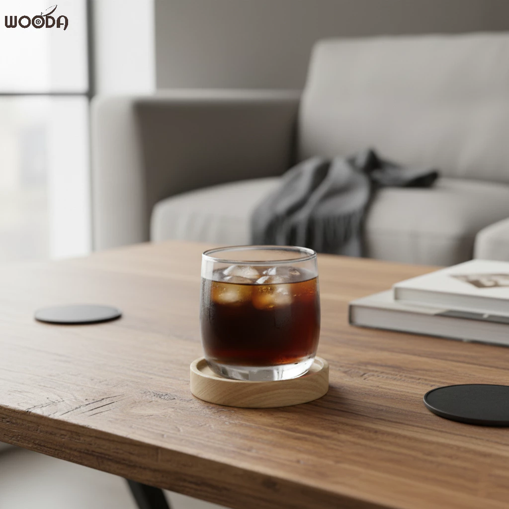 Lót ly tròn gỗ Tần Bì kích thước 10x10cm