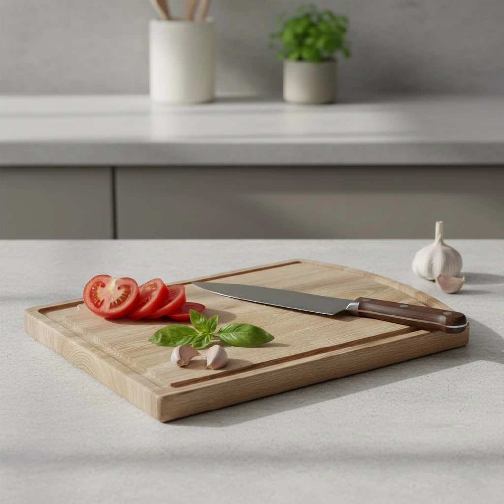 Thớt Gỗ Chữ Nhật Vòm Cong Có Rãnh, Kích Thước 25x32.5x1.8cm